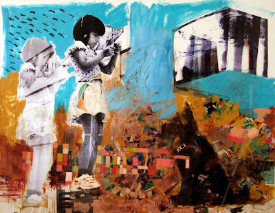 La pintora granadina Alicia Menoyo nos presenta en esta ocasión una serie de trabajos fruto de la evolución de su estilo desde una pintura mas figurativa hasta llegar a composiciones en las cuales nos encontramos con resultados que tienden cada vez mas a la simplicidad o casi al minimalismo, con elementos elementales y aparentemente sencillos y que no por ello dejan de ser menos sugerentes y atractivos para el espectador. Sus obras se nos muestran a modo de collages en los cuales se han utilizado distintos elementos y estilos como papeles, telas, cosidos, pinturas o dibujos .